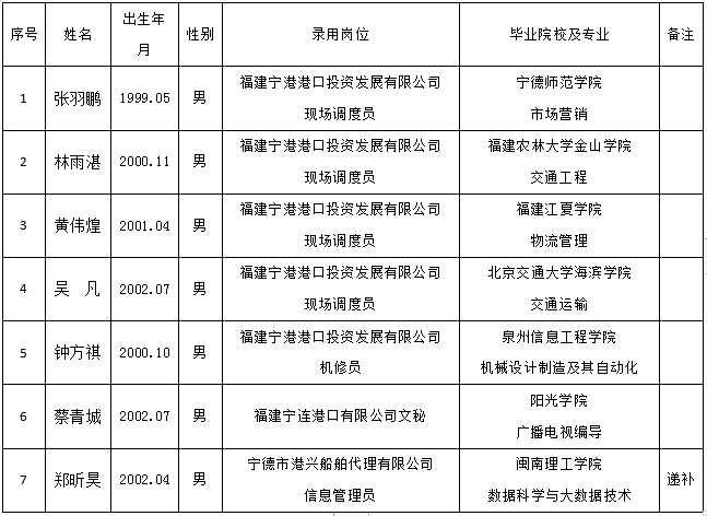 寧德港務集團有限公司 秋季校園招聘2024屆畢業(yè)生擬錄用人員名單公示