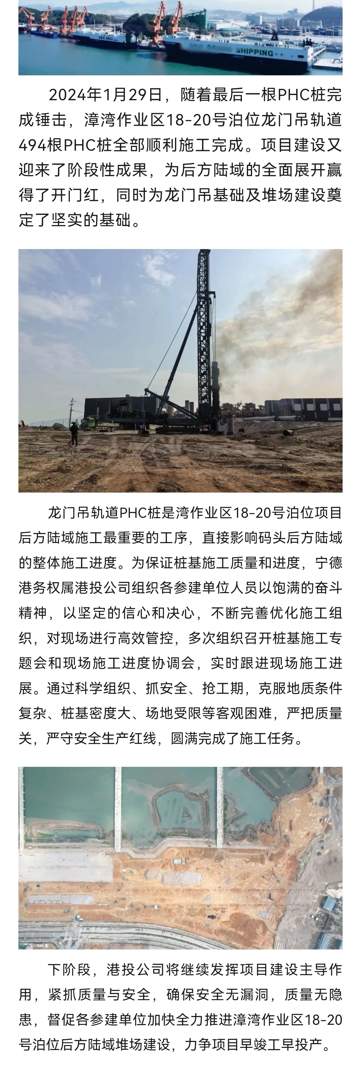 [漳灣作業(yè)區(qū)18-20號泊位龍門吊軌道樁基施工順利完成 - 寧德港務(wù)集團(tuán)有限公司]