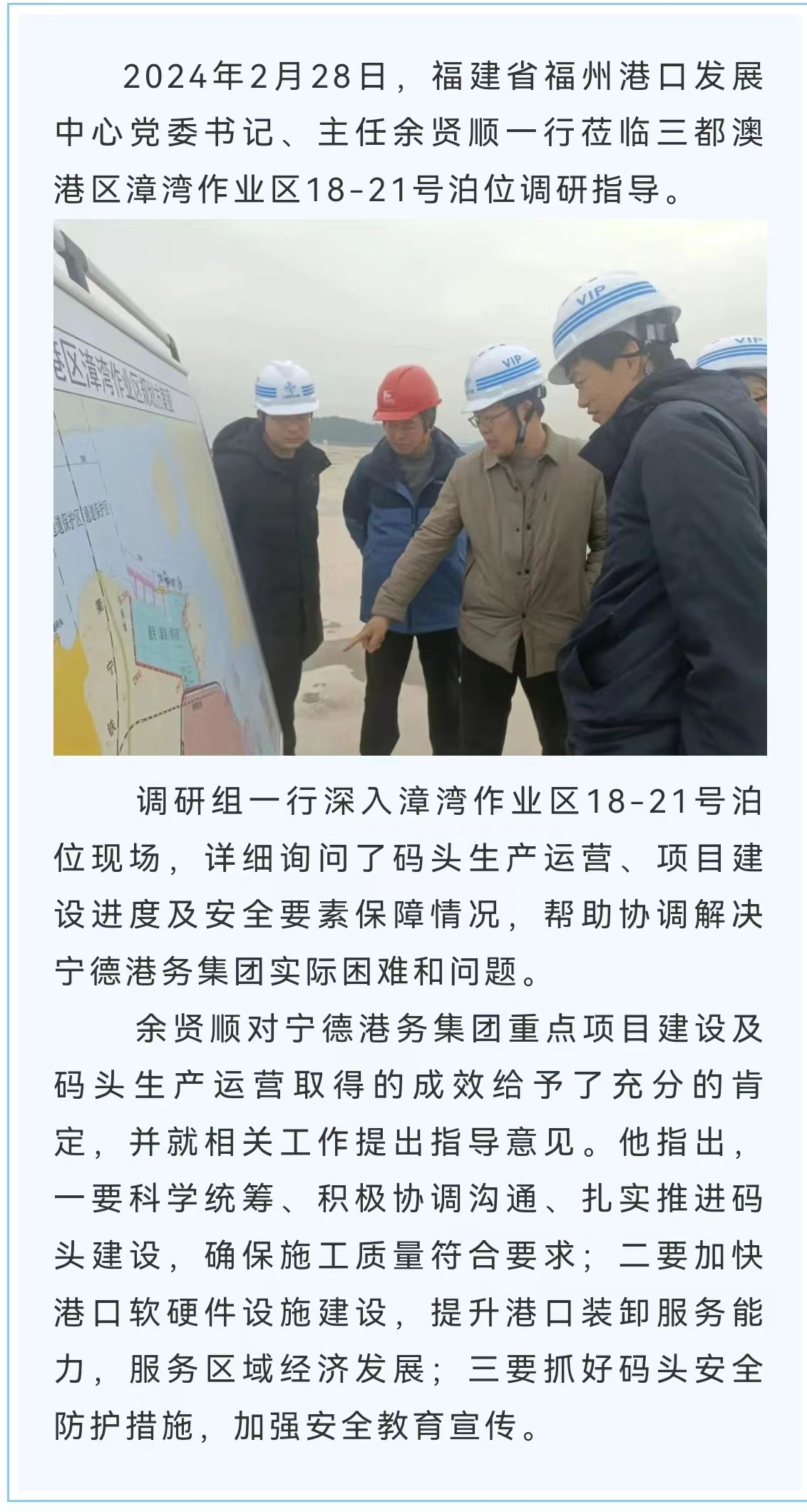 [福建省福州港口發(fā)展中心黨委書記、主任余賢順一行蒞臨漳灣作業(yè)區(qū)18-21號泊位調(diào)研 - 寧德港務(wù)集團有限公司]