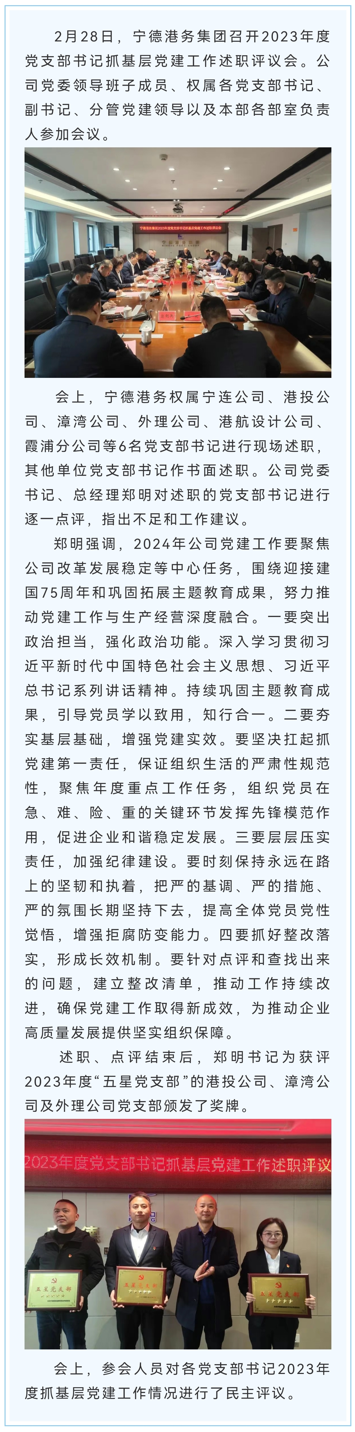 [寧德港務(wù)集團召開2023年度黨支部書記抓基層黨建工作述職評議會 - 寧德港務(wù)集團有限公司]