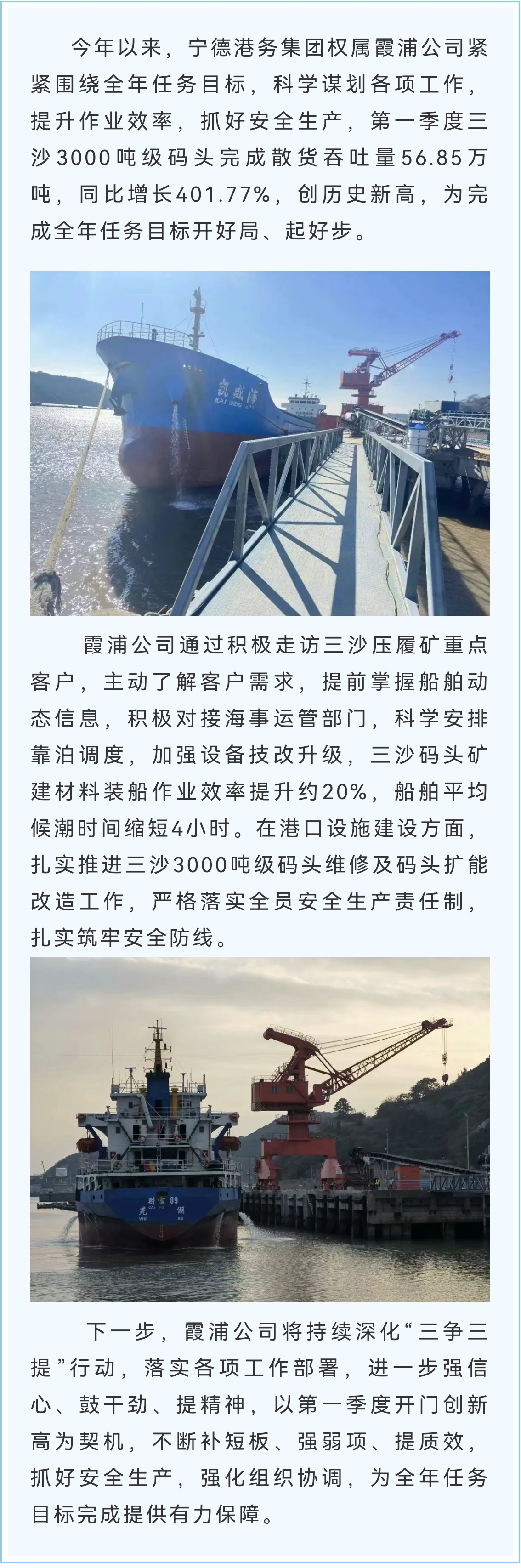 [寧德霞浦三沙3000噸級碼頭吞吐量創(chuàng)新高 - 寧德港務(wù)集團(tuán)有限公司]
