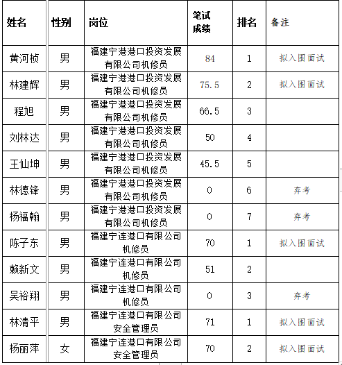 寧德港務(wù)集團(tuán)2024年社會招聘 筆試成績公示
