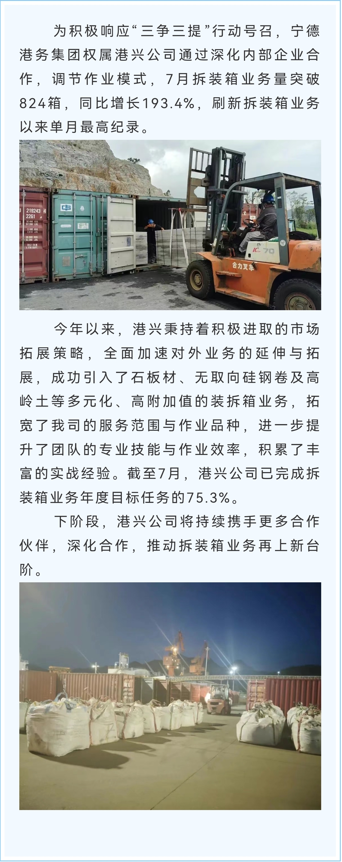 [深化拓展“三爭三提”丨比增193.4%!港興公司拆裝箱量創(chuàng)新高 - 寧德港務(wù)集團有限公司]