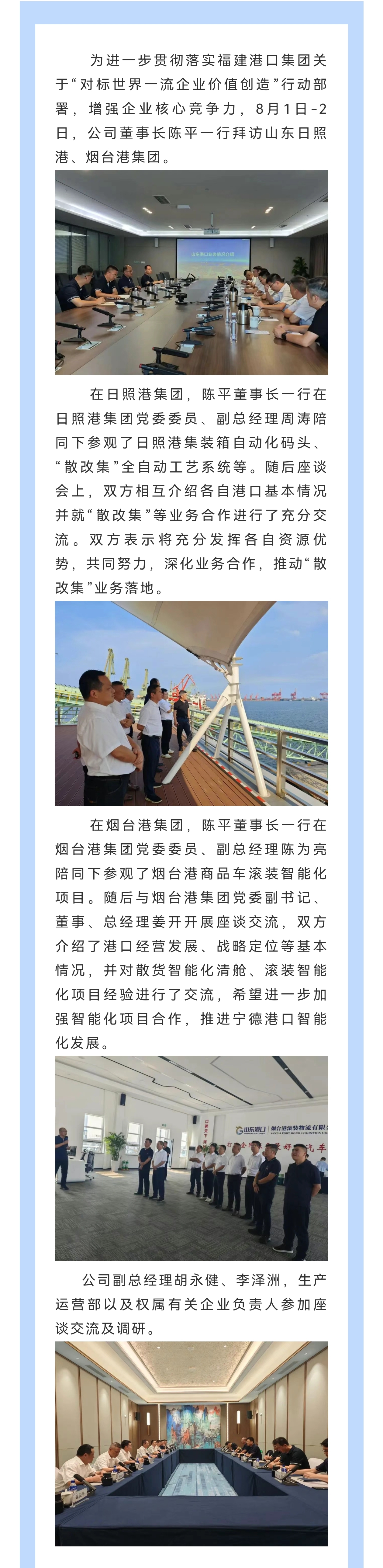 寧德港務(wù)集團董事長陳平一行拜訪山東日照港及煙臺港集團