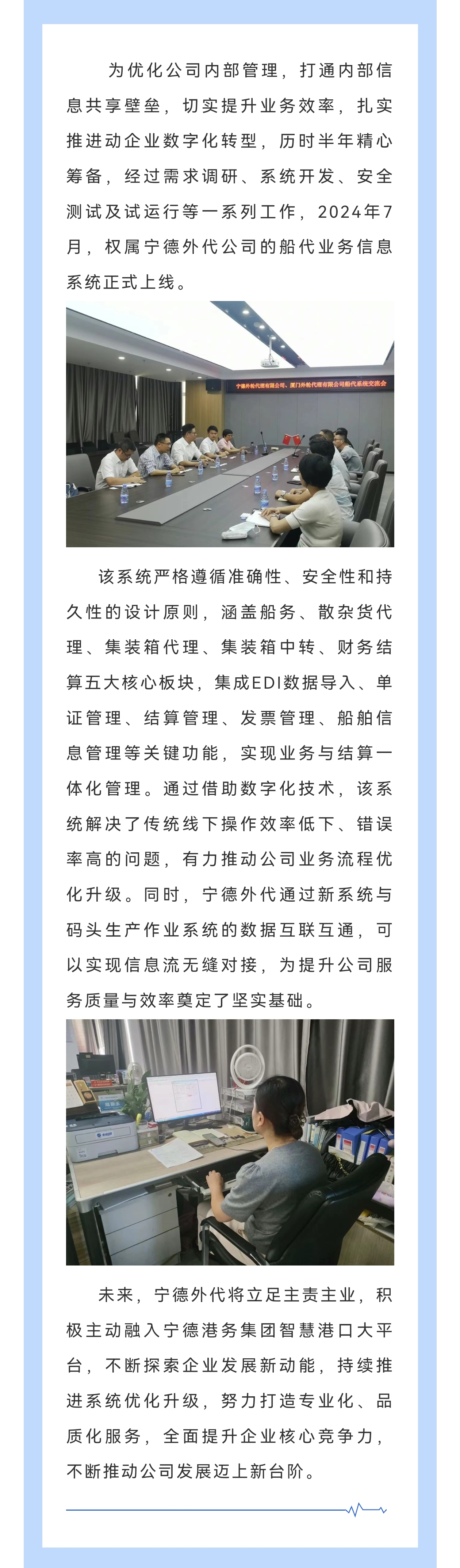 [向“新”而行丨寧德外代船代業(yè)務(wù)信息系統(tǒng)正式上線 - 寧德港務(wù)集團(tuán)有限公司]