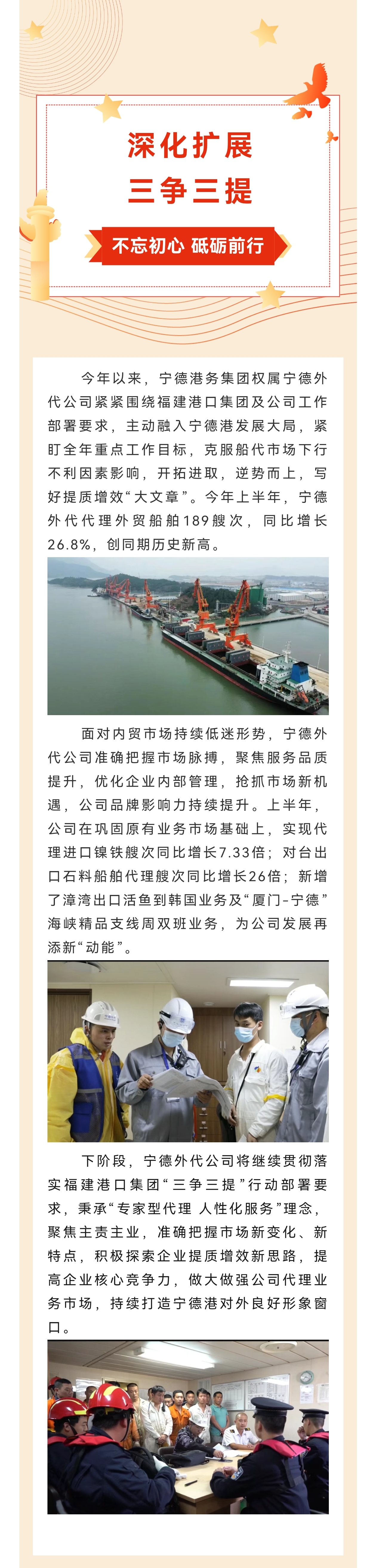 深化拓展“三爭(zhēng)三提”丨比增26.8%!寧德外代上半年代理外貿(mào)船舶艘次創(chuàng)新高