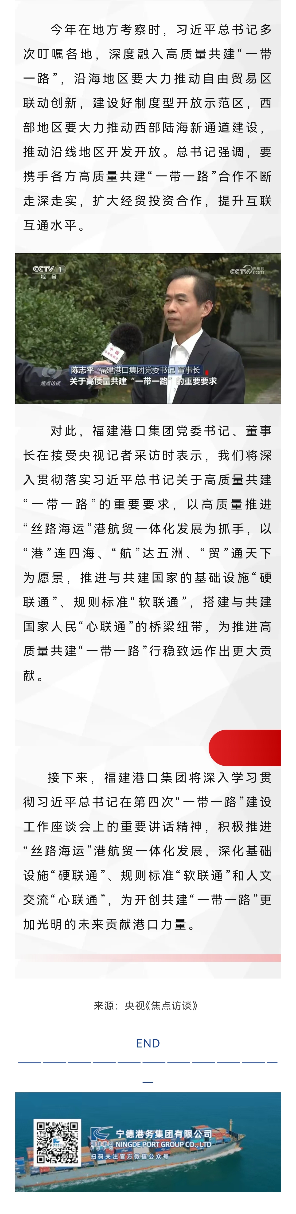 [熱點(diǎn)聚焦|集團(tuán)黨委書記、董事長陳志平接受《焦點(diǎn)訪談》采訪 共話“一帶一路”下一個(gè)金色十年 - 寧德港務(wù)集團(tuán)有限公司]