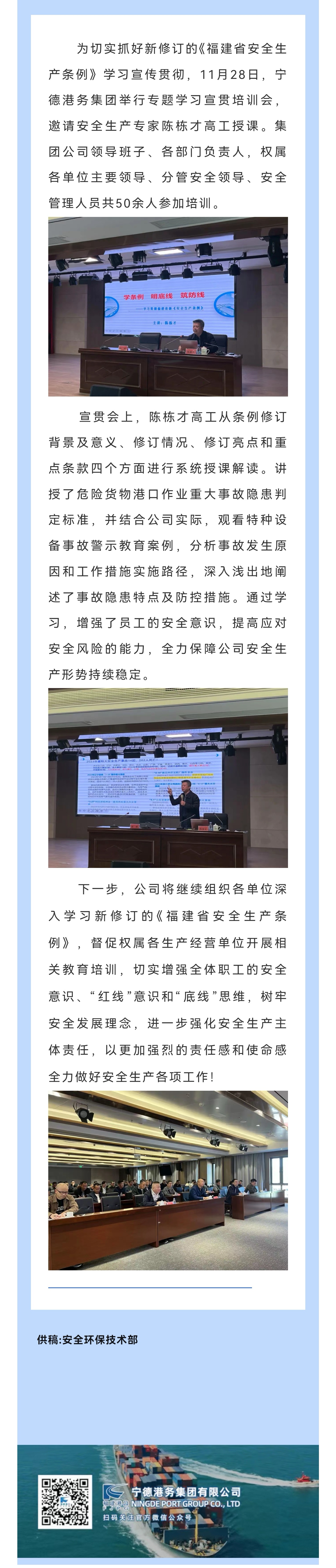 寧德港務(wù)集團(tuán)舉行《福建省安全生產(chǎn)條例》宣貫專題培訓(xùn)